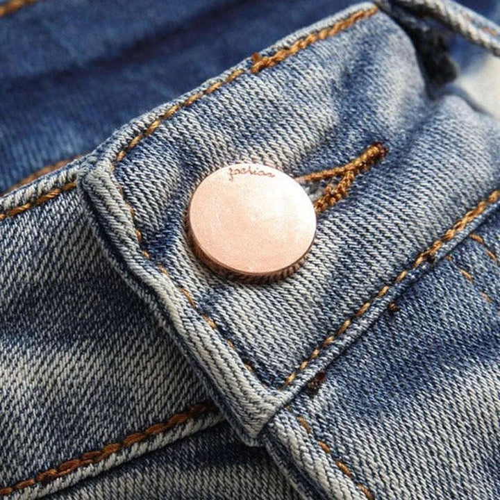 • Mid-Rise Cut: The mid-rise cut gives these jeans a timeless look.